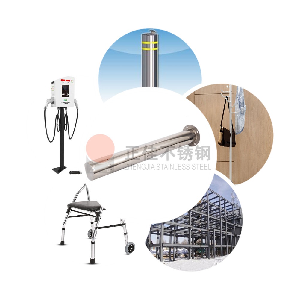 本款产品采用优质304不锈钢管,使用冲压工艺冲压出各种形状,实用美观且耐看,。主要应用于路障、充电桩等应用。