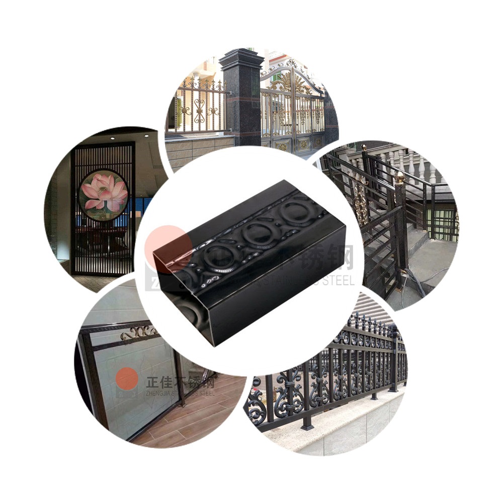 品名:元宝花纹不锈钢矩形管镀黑钛